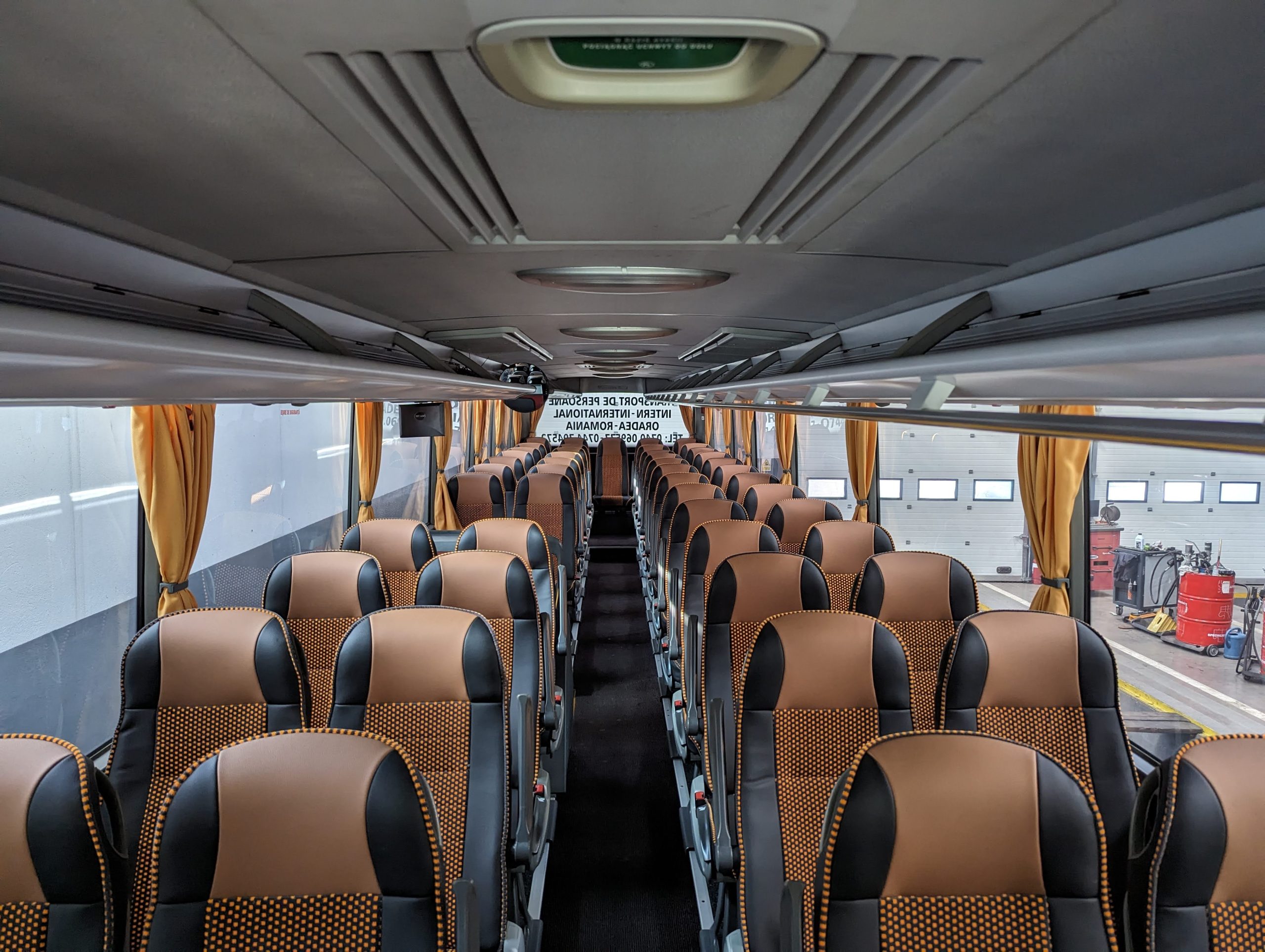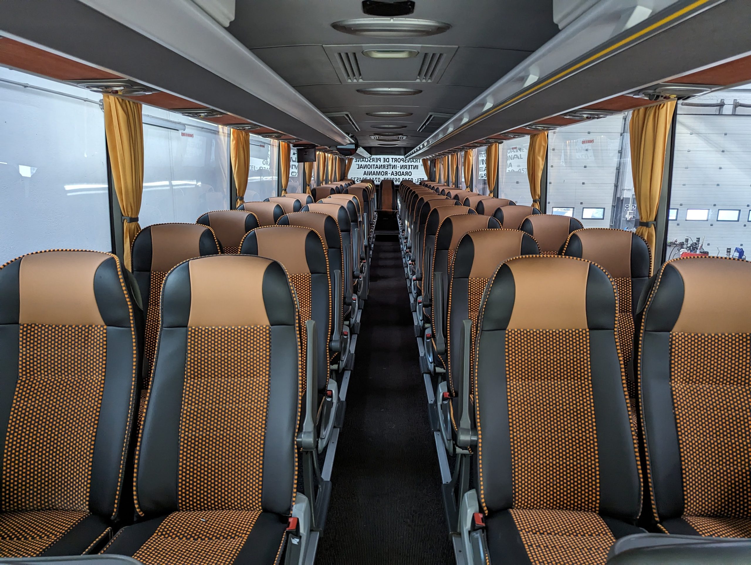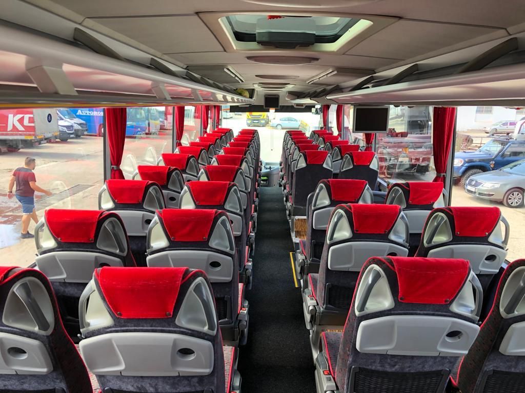Design Eleganta și Confortabilă: Autocarele noastre sunt mai mult decât vehicule de transport – sunt adevărate sanctuare mobile de lux. Cu un design exterior elegant și un interior spațios și confortabil, fiecare detaliu este atent proiectat pentru a crea un mediu plăcut și relaxant pentru pasageri. Scaunele ergonomice, tapițeria fină și iluminatul ambiental contribuie la o atmosferă de eleganță și rafinament pe întreaga durată a călătoriei.